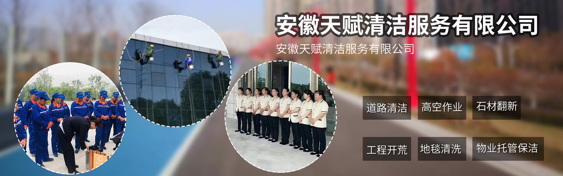 安徽天賦清潔服務(wù)有限公司是的服務(wù)型企業(yè),主要從事道路清潔、物業(yè)托管保潔、工程開荒、高空作業(yè)、地毯清洗、石材翻新等多項(xiàng)服務(wù)為一體的環(huán)保型清潔公司。公司管理機(jī)制完善,清潔作業(yè)經(jīng)驗(yàn)豐富,擁有技術(shù)力量,嚴(yán)格實(shí)行崗前培訓(xùn)—崗中督查—上崗在培訓(xùn)的員工管理措施,憑著優(yōu)良的清潔質(zhì)量和嚴(yán)格的督查管理,為眾多企事業(yè)單位、醫(yī)院、酒店、廠區(qū)商場(chǎng)、物業(yè)、道路、學(xué)校、公園等提供后勤清潔服務(wù)。在業(yè)內(nèi)擁有良好的口碑。工作人員,服務(wù)態(tài)度優(yōu),竭力為客戶提供好的保潔服務(wù)。安徽天賦清潔服務(wù)有限公司:致力于長(zhǎng)期合作關(guān)系,提高服務(wù)質(zhì)量,提供高標(biāo)準(zhǔn)的清潔服務(wù)。公司的經(jīng)營(yíng)理念:為營(yíng)造一個(gè)更清潔、亮麗的生活和工作環(huán)境而努力!“誠(chéng)信”是公司成功保證。“客戶至上,信譽(yù)為首”是公司宗旨。高標(biāo)準(zhǔn)提供服務(wù),維護(hù)客戶利益、形象,是我始終不渝的目標(biāo)。